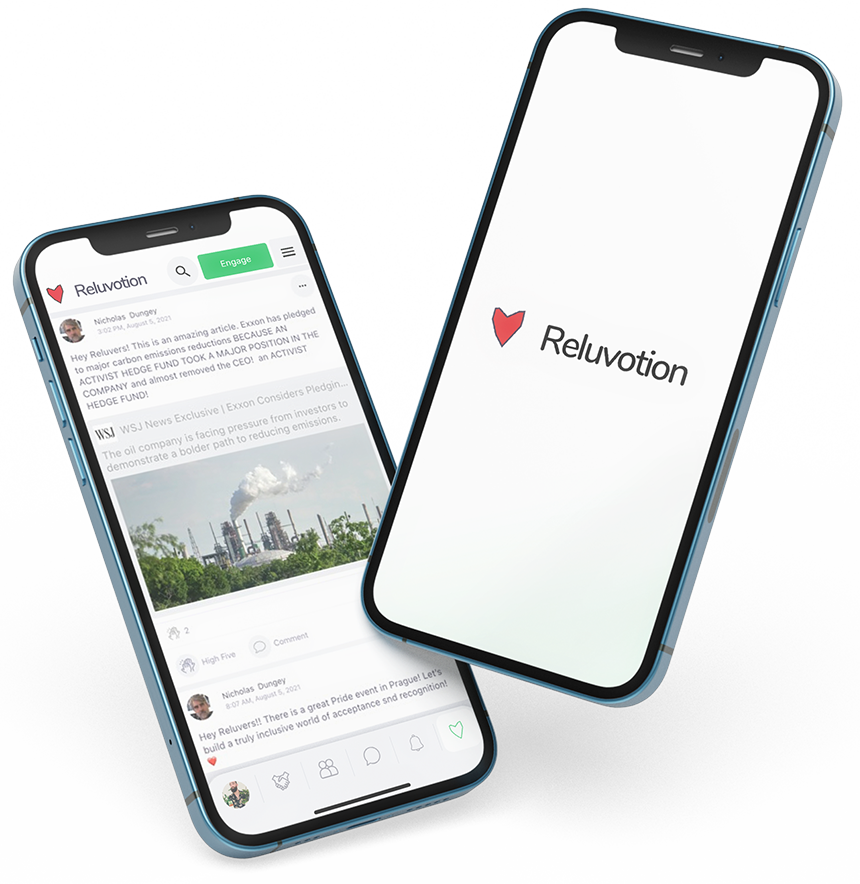 Reluvotion is a social good platform built exclusively for all types of positive change makers, cause driven organizations, governmental agencies and companies who are working for environmental, economic, social and political change. Reluv exists to create a positive, non-toxic space for individuals, organizations, governmental agencies and companies to gather, connect, collaborate and drive change. Reluv works in THREE ways: